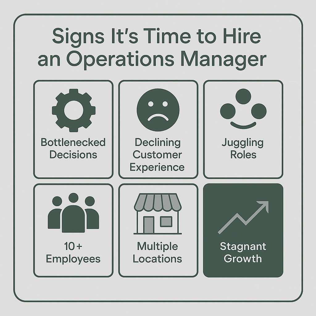 As your business grows, so do the demands on your time. At some point, you?ll face a key decision: keep wearing all the hats, or bring in someone dedicated to running the day-to-day. An Operations Manager can free you to focus on strategy, customers, and growth.